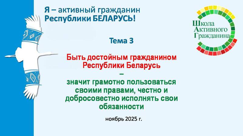Ключевая идея информационно-образовательного проекта «ШАГ» – «Школа Активного Гражданина» в 2025/2026 учебном году – «Быть достойным гражданином – значит быть активным гражданином Республики Беларусь!».