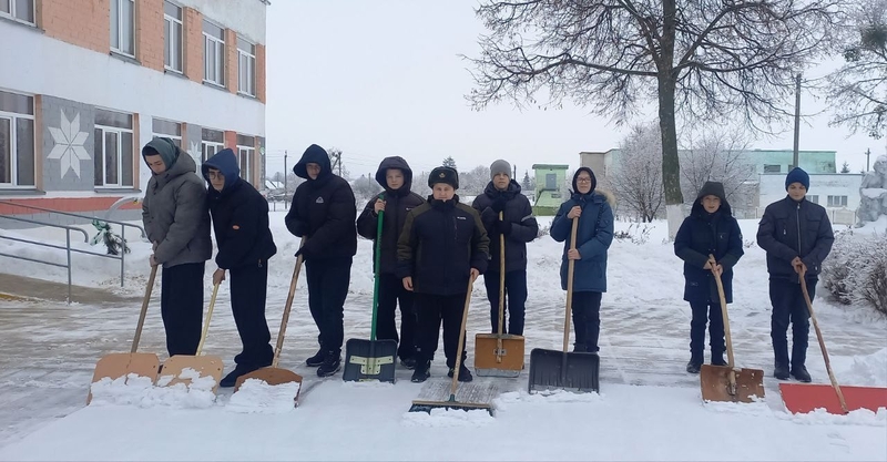 Учащиеся Судковской средней школы активно участвуют в уборке снега на территории школы и агрогородка Судково.